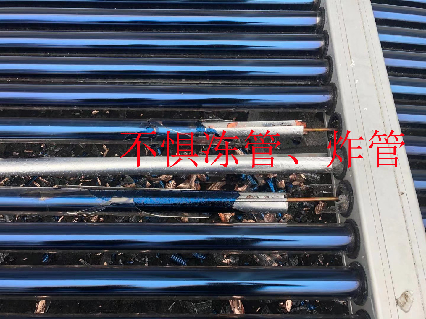 高效太陽(yáng)能集熱裝置。集熱器的真空管內(nèi)有U形的流道,因此稱(chēng)為U管集熱器。真空管吸熱后,傳導(dǎo)到U形管,加熱內(nèi)部介質(zhì),介質(zhì)循環(huán)流動(dòng)將熱量傳導(dǎo)回儲(chǔ)熱水箱。